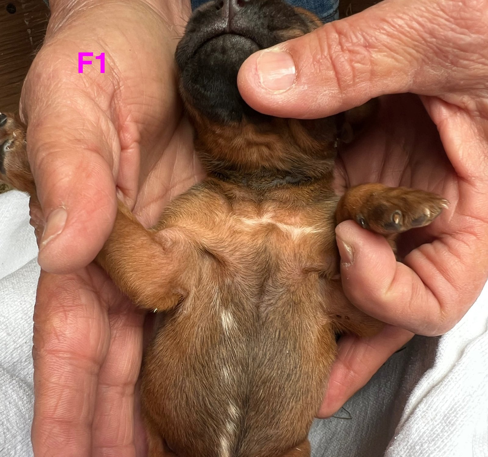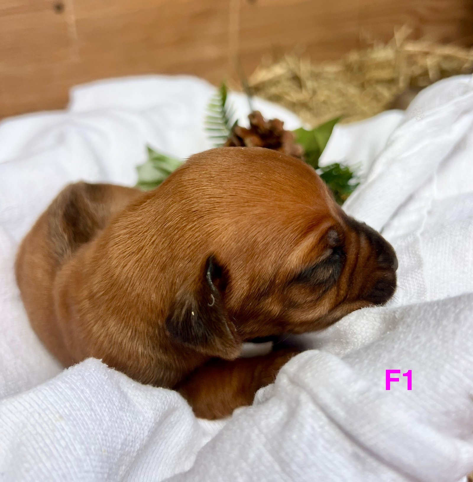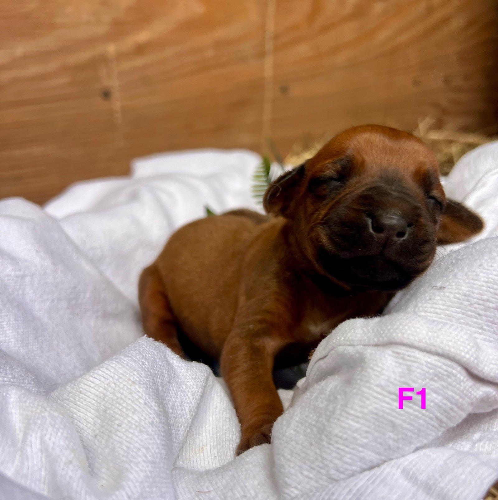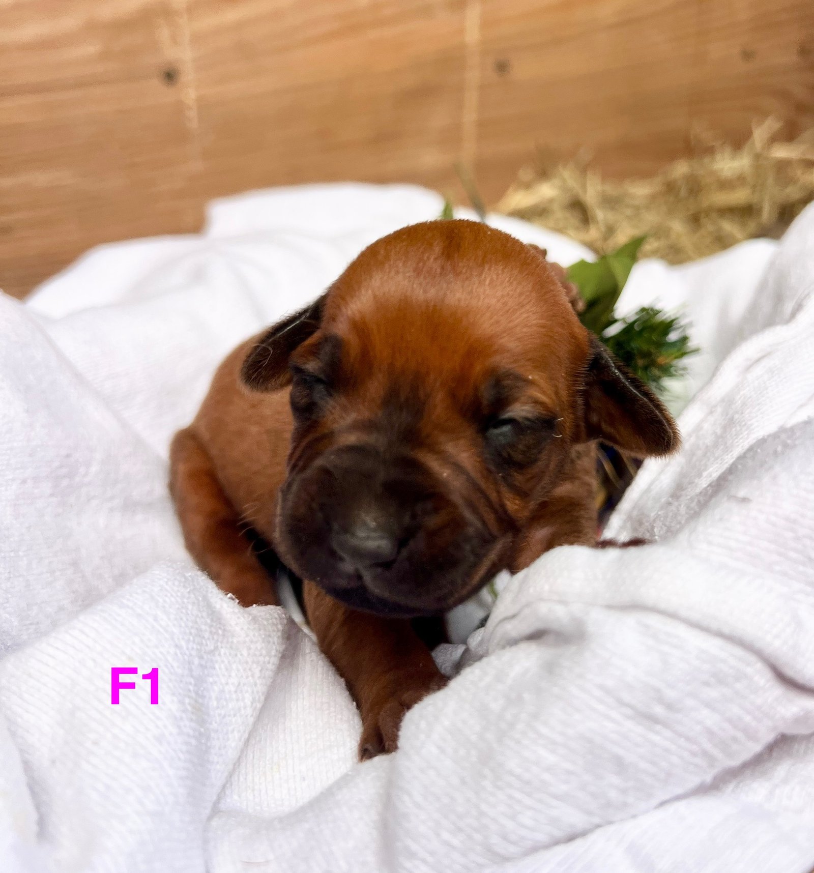 Millies Female 1 is a feminine little soul with that rich Dark Red Wheaten body and black mask. She is stunning and sooo sweet. Her attitude isn't showing yet as she wants to daintily eat and lay under her mama's chin. She demands mama see her and searches when mama is outside. Such a little sweetheart. She carries a really well-made ridge and crowns. Female 1 even has sugar plum fairies dripping down her little tummy as well. She is growing beautifully and represents the baby Ridgeback title with grace.